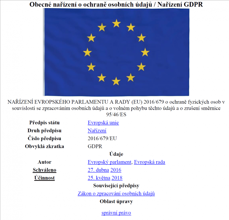 Podľa novely zákona o ochrane osobných údajov a európskeho nariadenia č... Predstavuje súbor ucelených pravidiel na ochranu dát v rámci európskej únie.